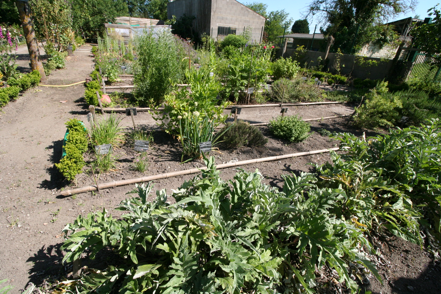 Un point d’eau permet la culture de plantes aquatiques. Des stands thématiques complètent cette fresque médiévale.