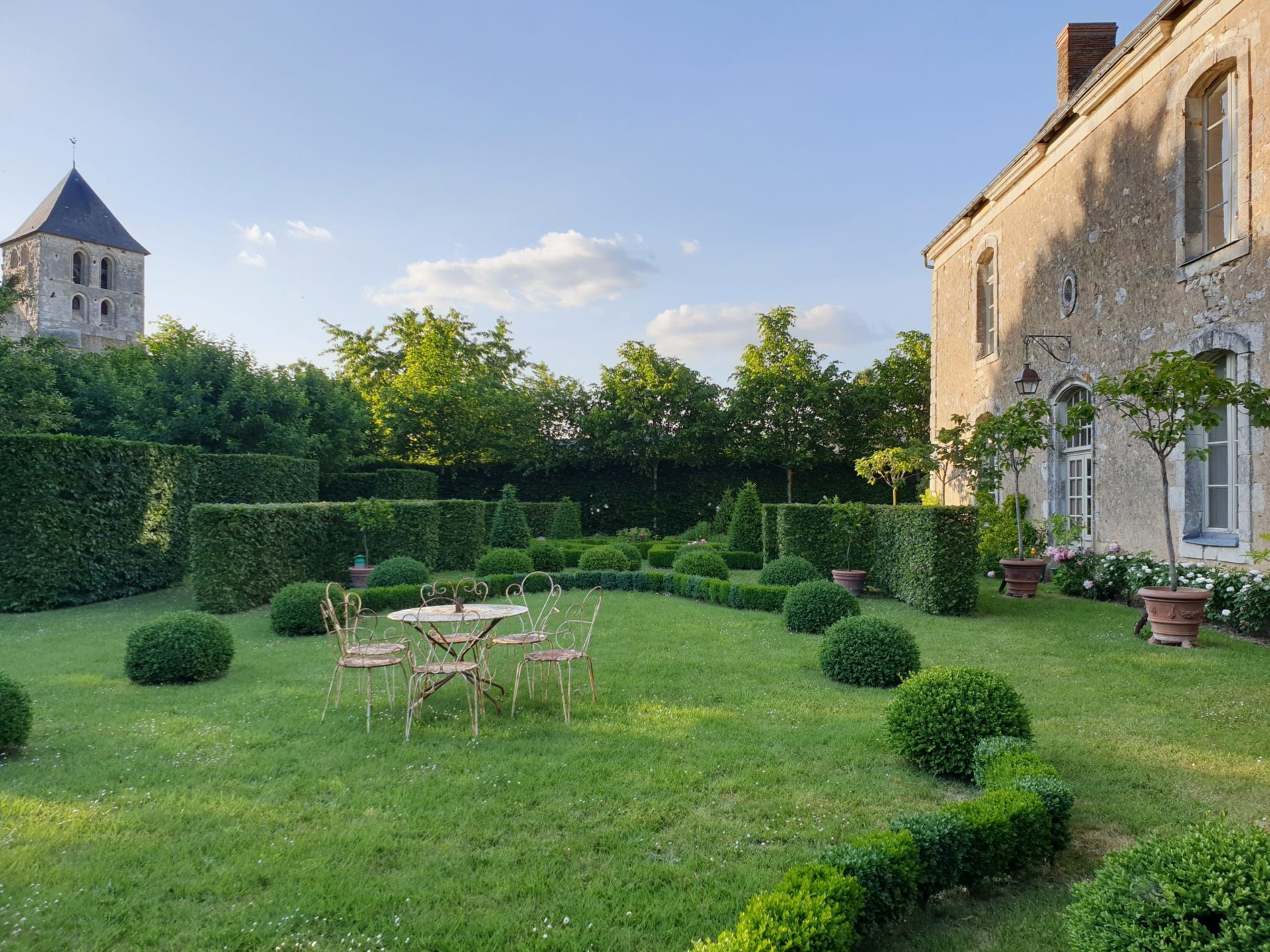 Le jardin comprend également des cognassiers, des citronniers, des orangers et des figuiers en pots en terre cuite de toscane, en forme de clin d’oeil à l’exotisme qui régnait à la cour du roi René d’Anjou.