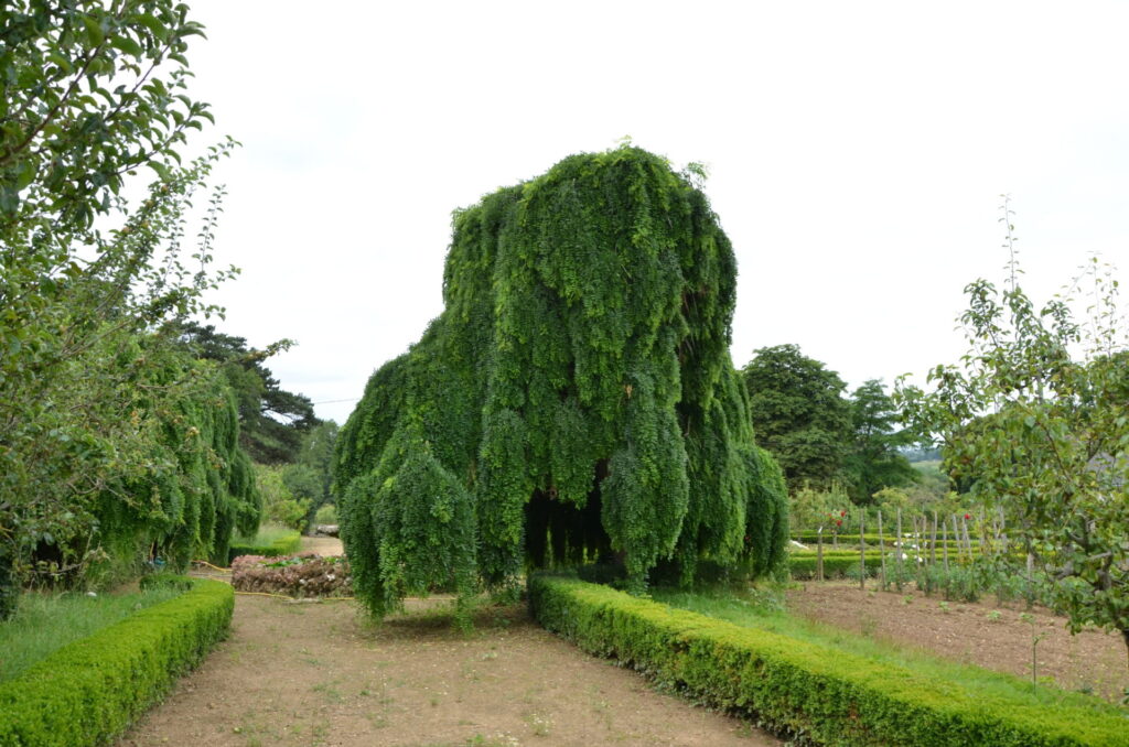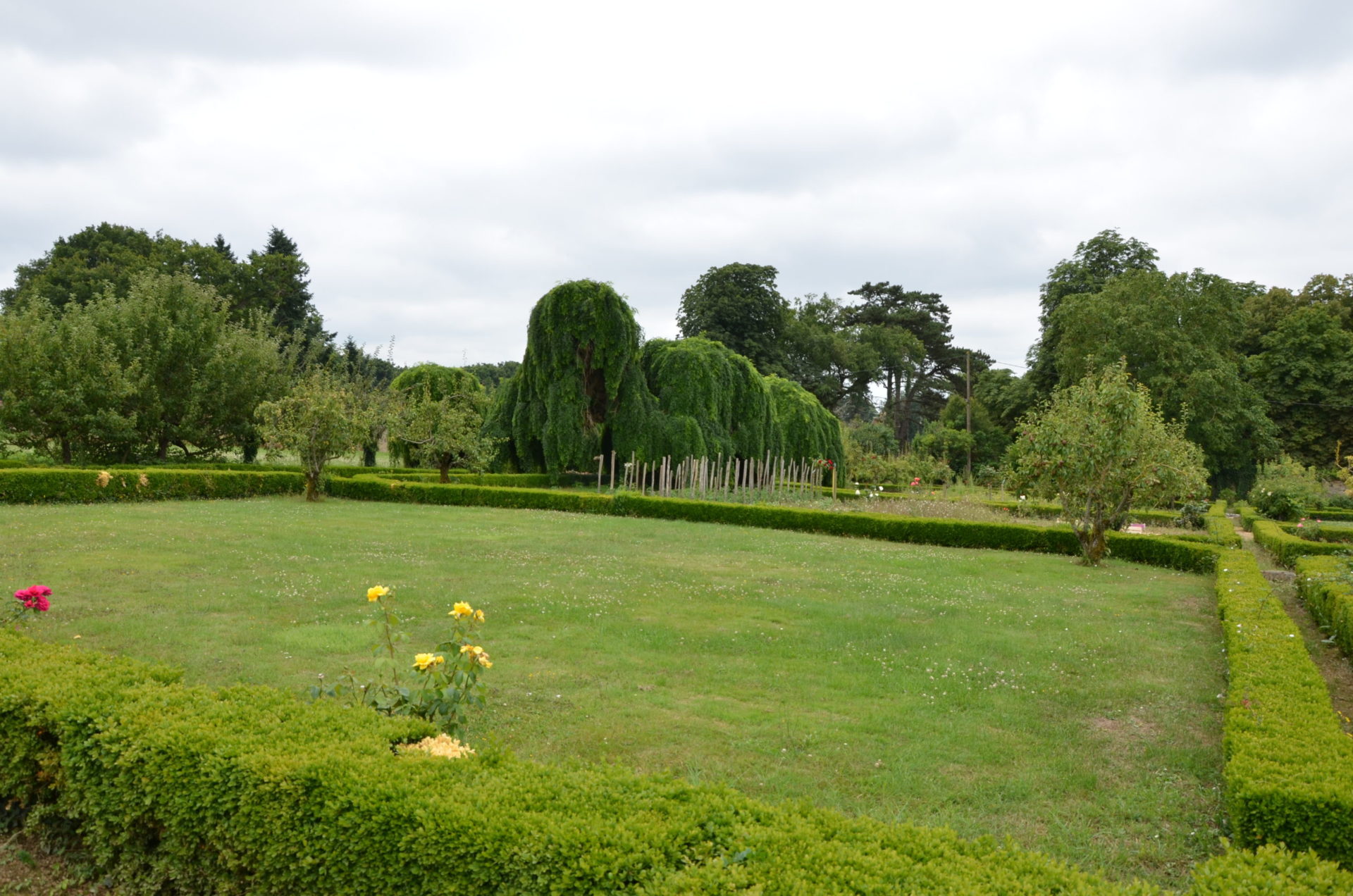 Jardin potager accompagnant le Parc paysager agricole dessiné par le compte de Choulot vers 1860, lors de la restauration du Château par l’architecte René Hodé avec un bois attenant. Clos de murs, divisé en huit carrés cernés de buis, ce jardin est ponctué, à l’intersection des deux allées principales d’une fontaine entourée de sophora japonica pleureurs, et abrite outre de nombreuses variétés anciennes de poiriers et pêchers, bassin rocailles, serres, murs en chartreuse…