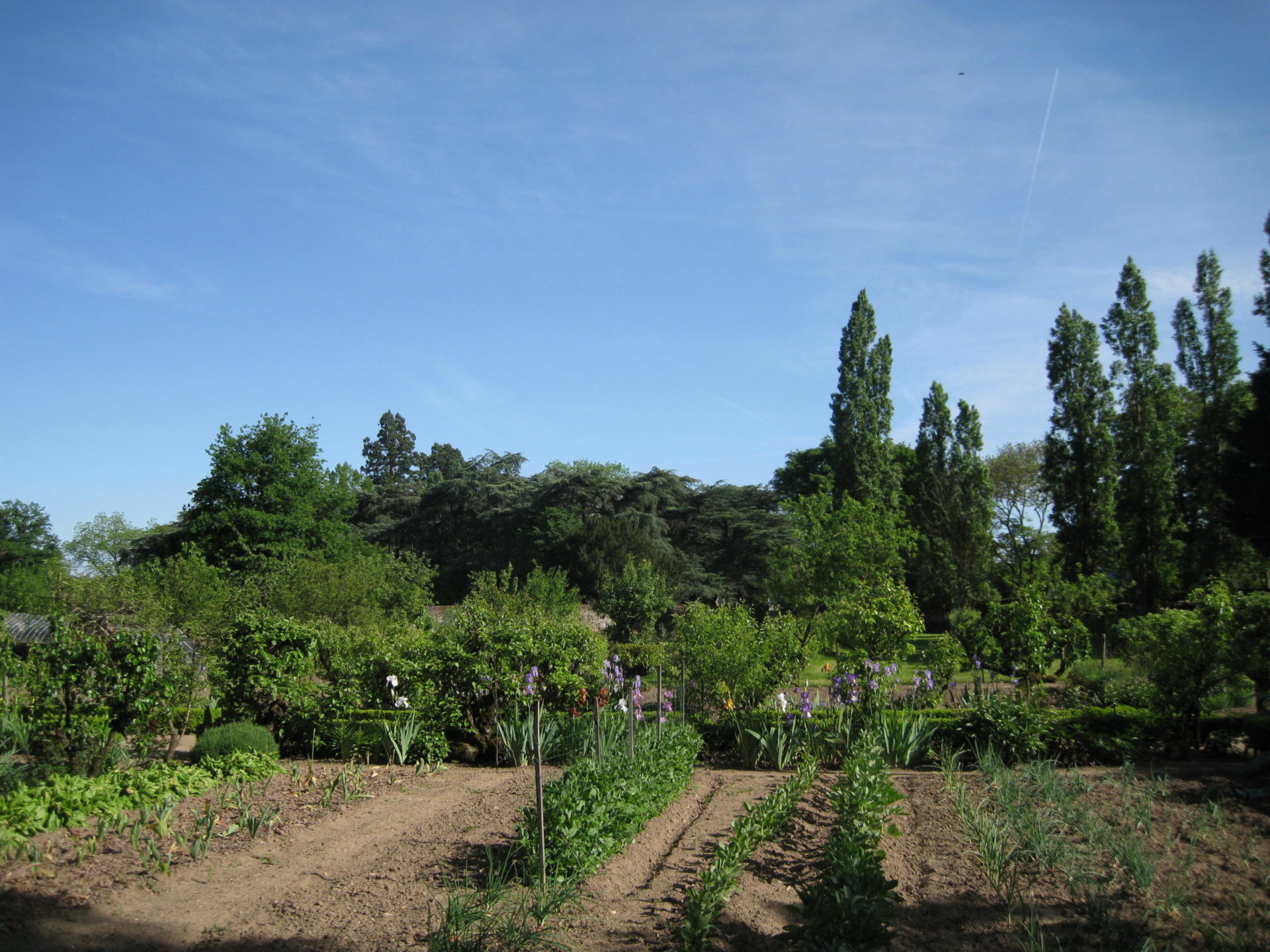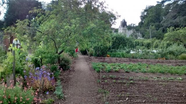 Le jardin potager, d’une superficie d’un hectare, n’a jamais cessé d’être cultivé avec soin et au naturel, depuis son origine. L’eau de pluie, récupérée des toitures du château, alimente la grande pièce d’eau, qui elle-même approvisionne en eau d’arrosage les différents bassins. Grâce à la multiplicité des fleurs et des fruitiers (300 grands et petits), de très nombreux insectes et oiseaux favorisent l’équilibre naturel des plantes sans traitement et une bonne pollinisation des légumes et des fruitiers. La terre est enrichie par les engrais verts et les paillis de feuilles mortes, à toutes les saisons.